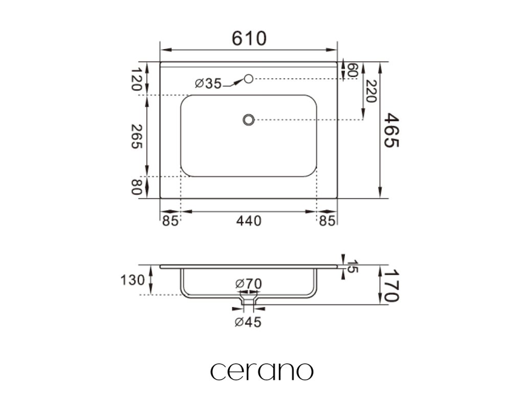 CERANO - Umyvadlo keramické Novo - nábytkové - bílá lesklá - 61x46,5 cm