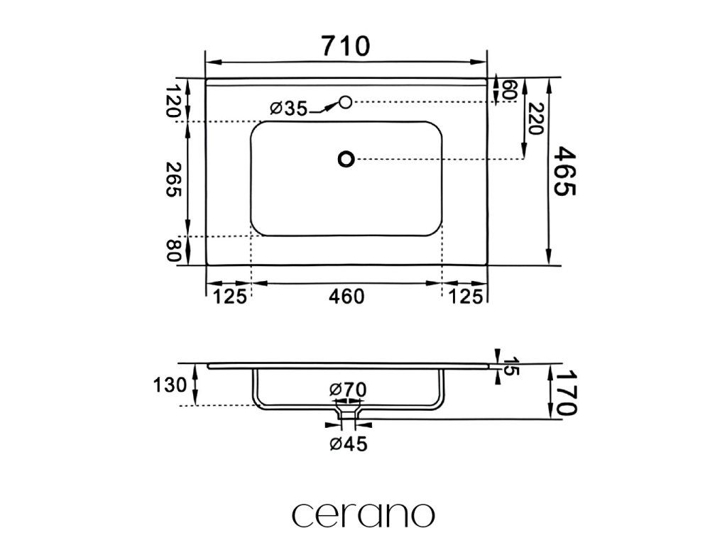 CERANO - Umyvadlo keramické Novo - nábytkové - bílá lesklá - 71x46,5 cm