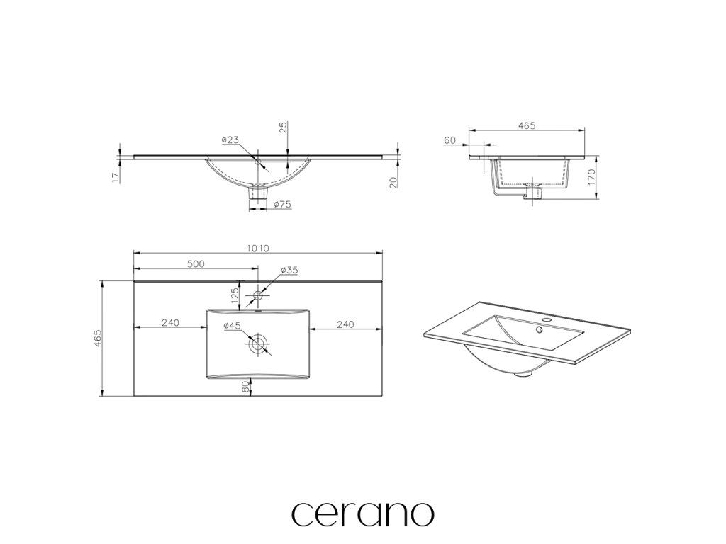 CERANO - Umyvadlo keramické Todo - nábytkové - bílá lesklá - 101x46,5 cm