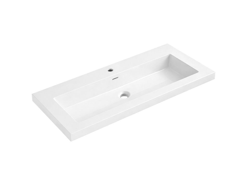 CERANO - Umyvadlo z litého mramoru Ovo - s přepadem - bílá lesklá - otvor pro baterii- 100,5x46,3 cm