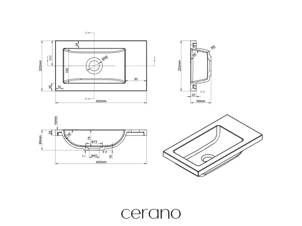 CERANO - Umyvadlo z litého mramoru Sora/Zola - bílá matná - 40x22 cm