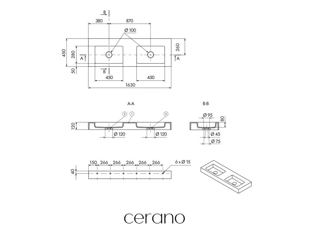 CERANO - Umyvadlo z litého mramoru Geminia - nástěnné - bílá matná - 163x45 cm
