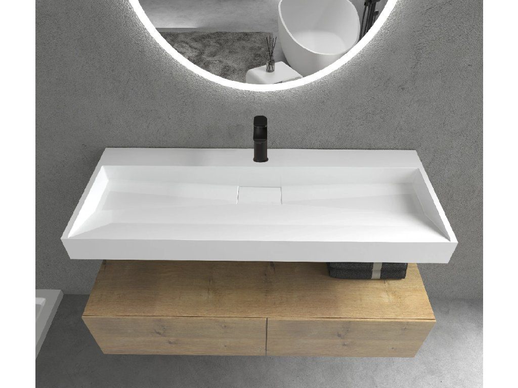CERANO - Umyvadlo z litého mramoru Vita - nástěnné i na desku - otvor pro baterii - bílá matná - 120x46 cm