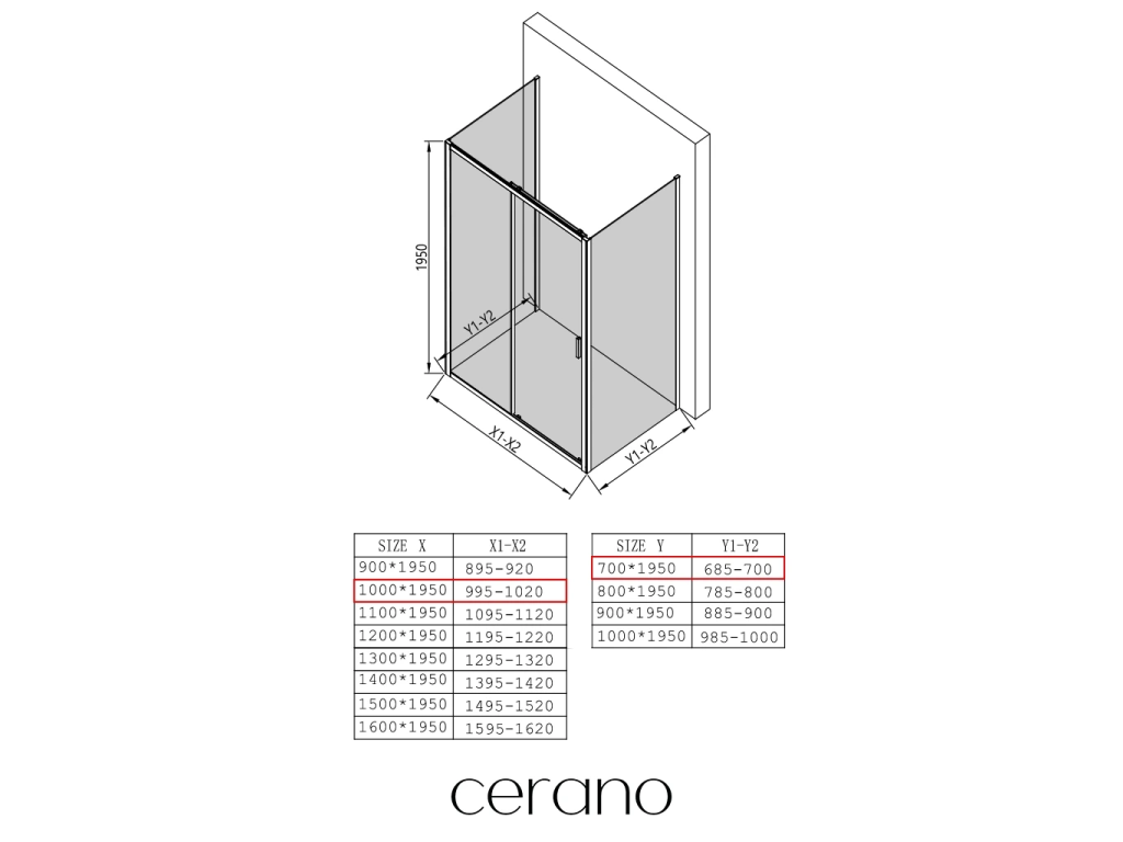 V rámci této série nabízíme širokou škálu rozměrů, abychom uspokojili různé potřeby našich zákazníků. Všechny sprchové kouty, dveře a zástěny značky CERANO jsou plně kompatibilní se sprchovými vaničkami CERANO ve stejných rozměrech, což zajišťuje bezproblémovou instalaci a dokonalé sladění. Sprchový kout lze navíc instalovat flexibilně – buď na odpovídající sprchovou vaničku, nebo přímo na podlahu podle vašich preferencí a možností koupelny.