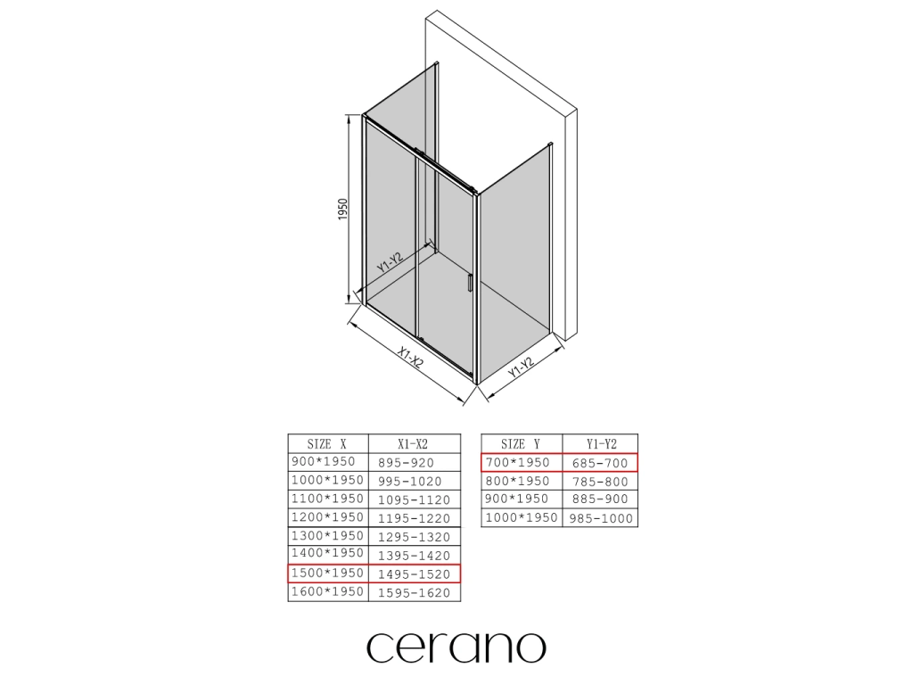 V rámci této série nabízíme širokou škálu rozměrů, abychom uspokojili různé potřeby našich zákazníků. Všechny sprchové kouty, dveře a zástěny značky CERANO jsou plně kompatibilní se sprchovými vaničkami CERANO ve stejných rozměrech, což zajišťuje bezproblémovou instalaci a dokonalé sladění. Sprchový kout lze navíc instalovat flexibilně – buď na odpovídající sprchovou vaničku, nebo přímo na podlahu podle vašich preferencí a možností koupelny.