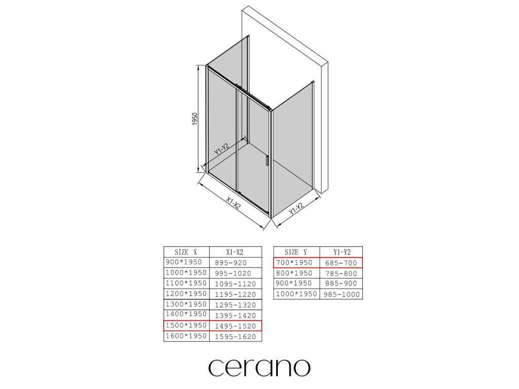 V rámci této série nabízíme širokou škálu rozměrů, abychom uspokojili různé potřeby našich zákazníků. Všechny sprchové kouty, dveře a zástěny značky CERANO jsou plně kompatibilní se sprchovými vaničkami CERANO ve stejných rozměrech, což zajišťuje bezproblémovou instalaci a dokonalé sladění. Sprchový kout lze navíc instalovat flexibilně – buď na odpovídající sprchovou vaničku, nebo přímo na podlahu podle vašich preferencí a možností koupelny.