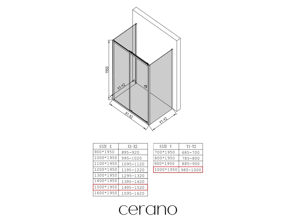 V rámci této série nabízíme širokou škálu rozměrů, abychom uspokojili různé potřeby našich zákazníků. Všechny sprchové kouty, dveře a zástěny značky CERANO jsou plně kompatibilní se sprchovými vaničkami CERANO ve stejných rozměrech, což zajišťuje bezproblémovou instalaci a dokonalé sladění. Sprchový kout lze navíc instalovat flexibilně – buď na odpovídající sprchovou vaničku, nebo přímo na podlahu podle vašich preferencí a možností koupelny.