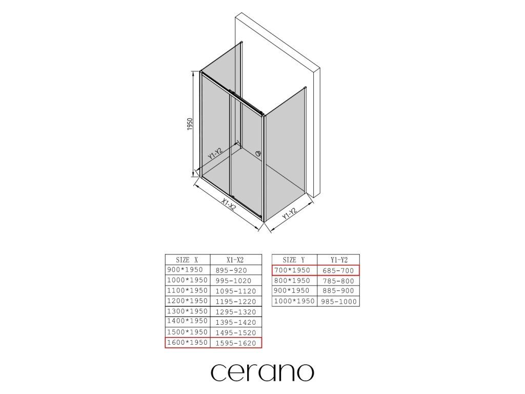 V rámci této série nabízíme širokou škálu rozměrů, abychom uspokojili různé potřeby našich zákazníků. Všechny sprchové kouty, dveře a zástěny značky CERANO jsou plně kompatibilní se sprchovými vaničkami CERANO ve stejných rozměrech, což zajišťuje bezproblémovou instalaci a dokonalé sladění. Sprchový kout lze navíc instalovat flexibilně – buď na odpovídající sprchovou vaničku, nebo přímo na podlahu podle vašich preferencí a možností koupelny.