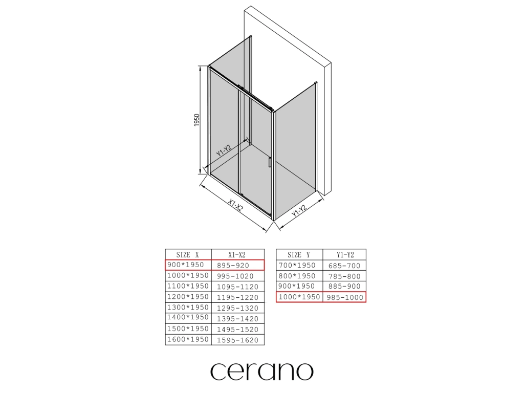 V rámci této série nabízíme širokou škálu rozměrů, abychom uspokojili různé potřeby našich zákazníků. Všechny sprchové kouty, dveře a zástěny značky CERANO jsou plně kompatibilní se sprchovými vaničkami CERANO ve stejných rozměrech, což zajišťuje bezproblémovou instalaci a dokonalé sladění. Sprchový kout lze navíc instalovat flexibilně – buď na odpovídající sprchovou vaničku, nebo přímo na podlahu podle vašich preferencí a možností koupelny.