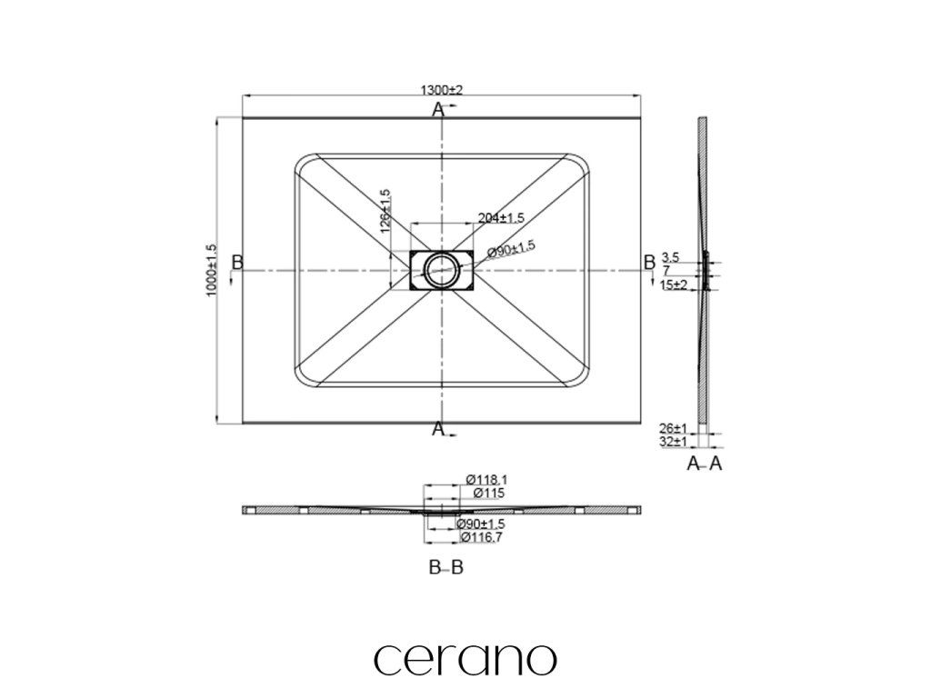 CERANO - Sprchová vanička obdélníková FlexiCut - SMC/minerální kompozit - upravitelná - černá matná - 130x100x3 cm