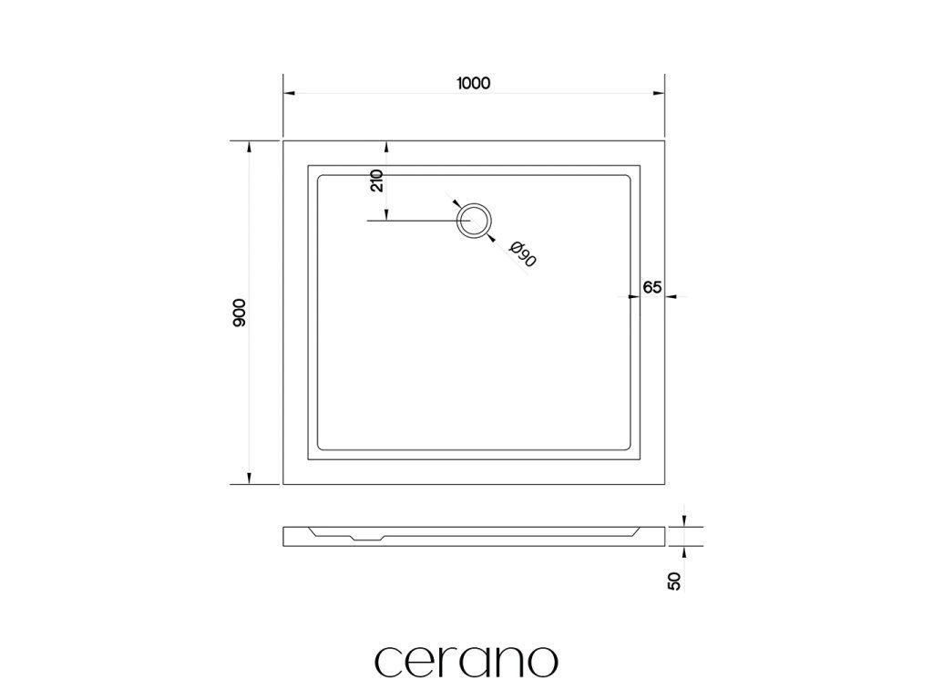 CERANO - Sprchová vanička obdélníková Soto - akrylát - bílá lesklá - 100x90x5 cm