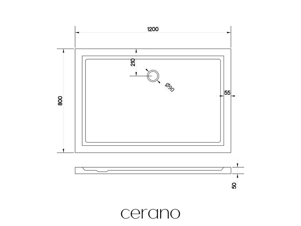 CERANO - Sprchová vanička obdélníková Soto - akrylát - bílá lesklá - 120x80x5 cm