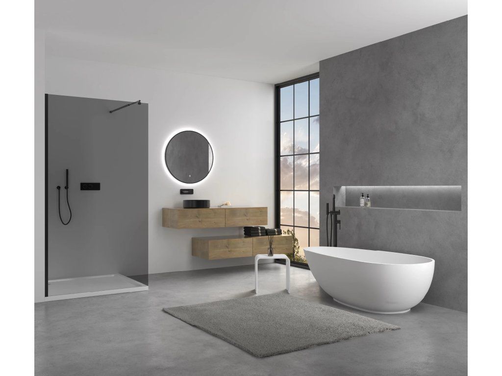Díky středovému odtoku, vyspádování a pohledovému provedení ze všech stran lze vaničku instalovat na pravou i levou stranu a snadno ji přizpůsobit prostoru i individuálním požadavkům koupelny.