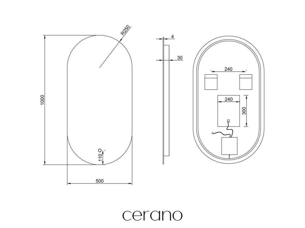 Na zadní straně zrcadla je připravený konektor pro připojení ke zdroji. Je to praktické řešení, které umožňuje skrýt kabely za zrcadlem, což zajišťuje estetický a upravený vzhled koupelny.
