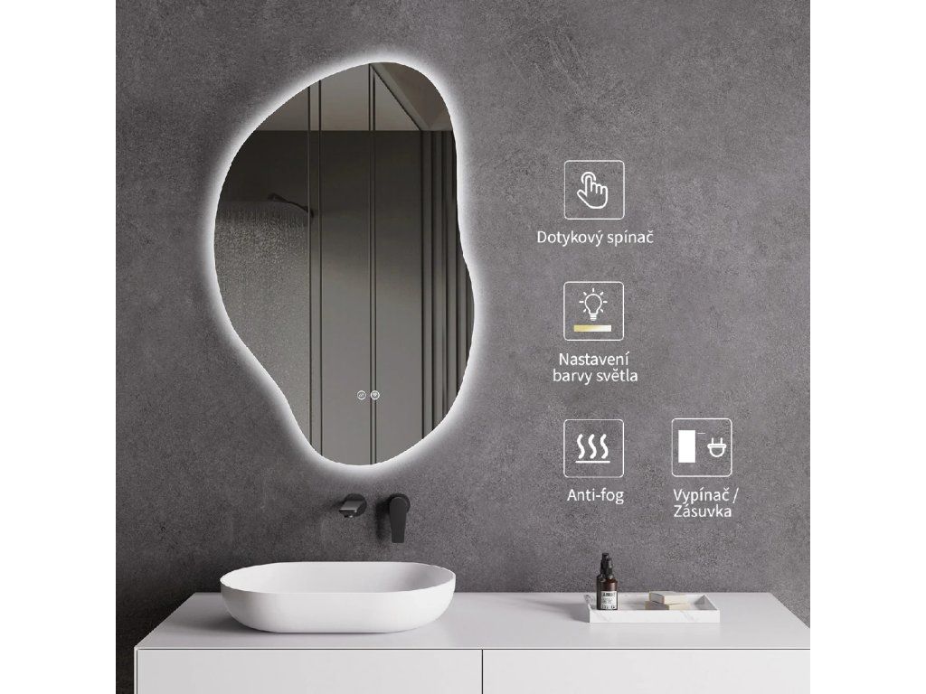 Zrcadlo je vybaveno LED osvětlením s nastavitelnou barvou světla – od 2800 K (teplá) do 6000 K (Neutrální). Přepínání barev jednoduše ovládáte dotykovým tlačítkem na ploše zrcadla. Poskytuje intenzivní a jasné světlo pro detailní péči i příjemné, jemné osvětlení pro relaxaci. Díky širokému rozsahu teploty barev tak snadno přizpůsobíte atmosféru aktuální potřebě.