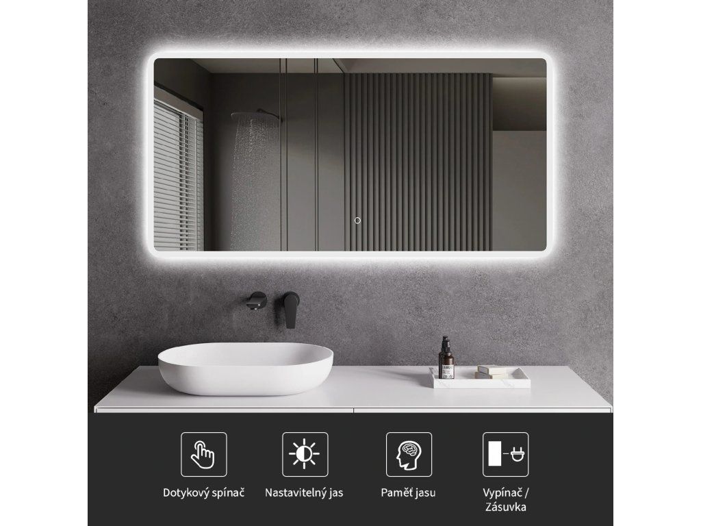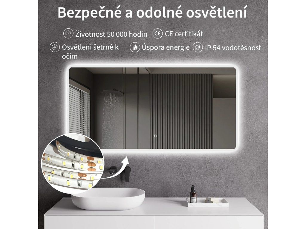 Osvětlení zrcadla lze snadno a pohodlně zapnout dotykem přepínače na panelu zrcadla. Umožňuje rychlé nastavení osvětlení bez nutnosti sahat po vzdálenějším tradičním vypínači.