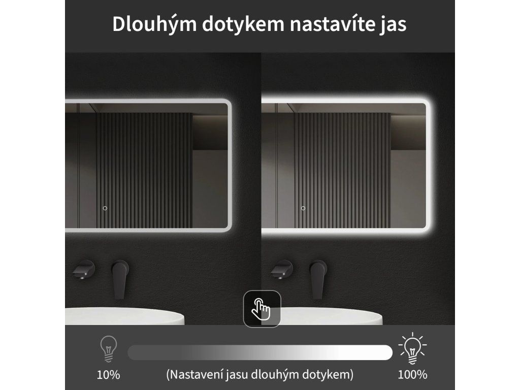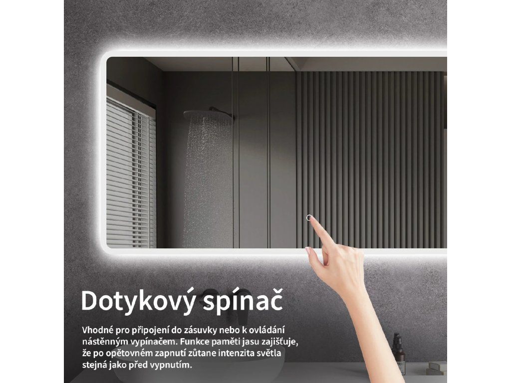 Osvětlení zrcadla lze snadno a pohodlně zapnout dotykem přepínače na panelu zrcadla. Umožňuje rychlé nastavení osvětlení bez nutnosti sahat po vzdálenějším tradičním vypínači.