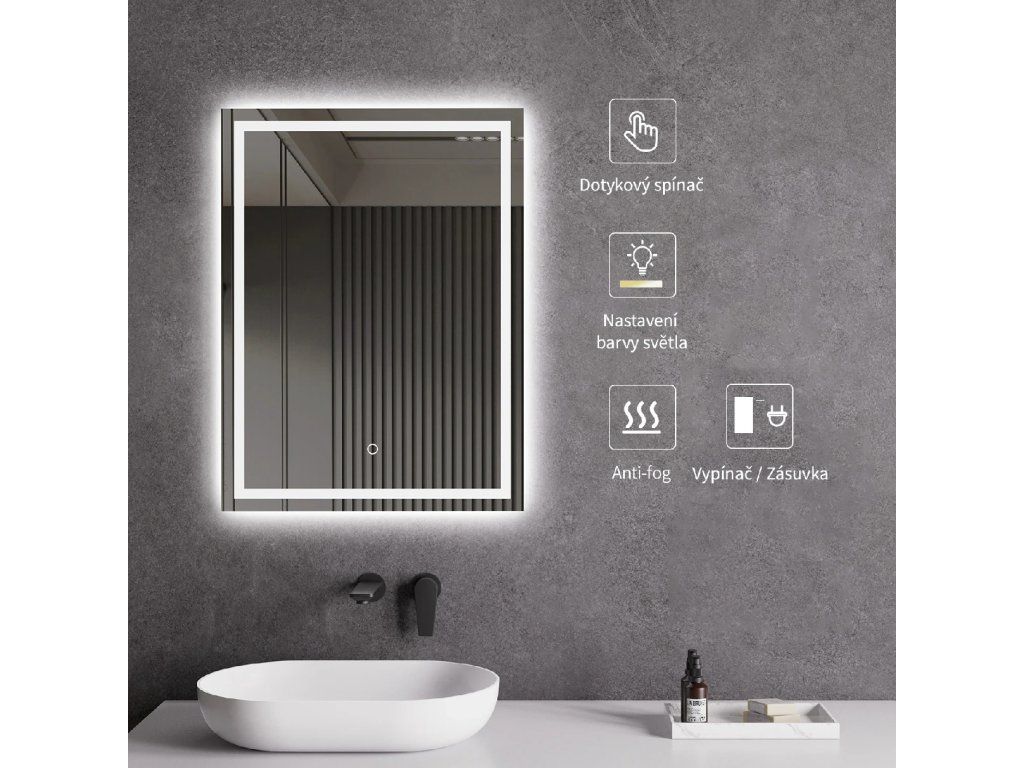 Zrcadlo je vybaveno LED osvětlením s nastavitelnou barvou světla – od 3000 K (teplá) do 6000 K (Neutrální). Přepínání barev jednoduše ovládáte dotykovým tlačítkem na ploše zrcadla. Poskytuje intenzivní a jasné světlo pro detailní péči i příjemné, jemné osvětlení pro relaxaci. Díky širokému rozsahu teploty barev tak snadno přizpůsobíte atmosféru aktuální potřebě.