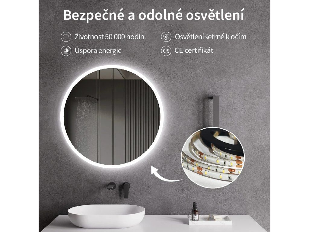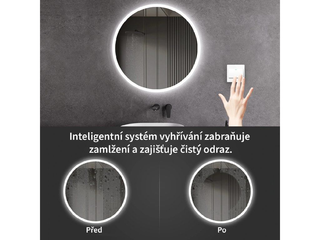 Osvětlení zrcadla lze zapnout skrze vypínač na zdi. Je nutné napojit jej přímo na domácí elektrickou síť. Před instalací doporučujeme obrátit se na kvalifikovaného elektrikáře, který zajistí správné a bezpečné připojení.