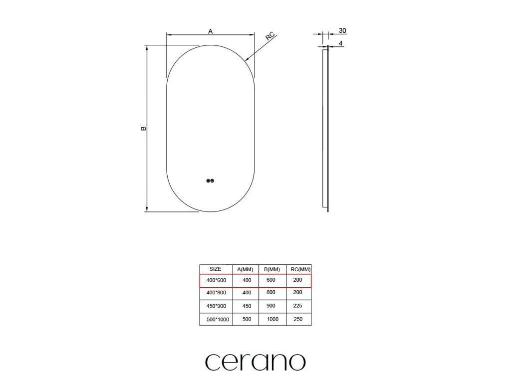 CERANO - Koupelnové LED zrcadlo Luno - 40x60 cm