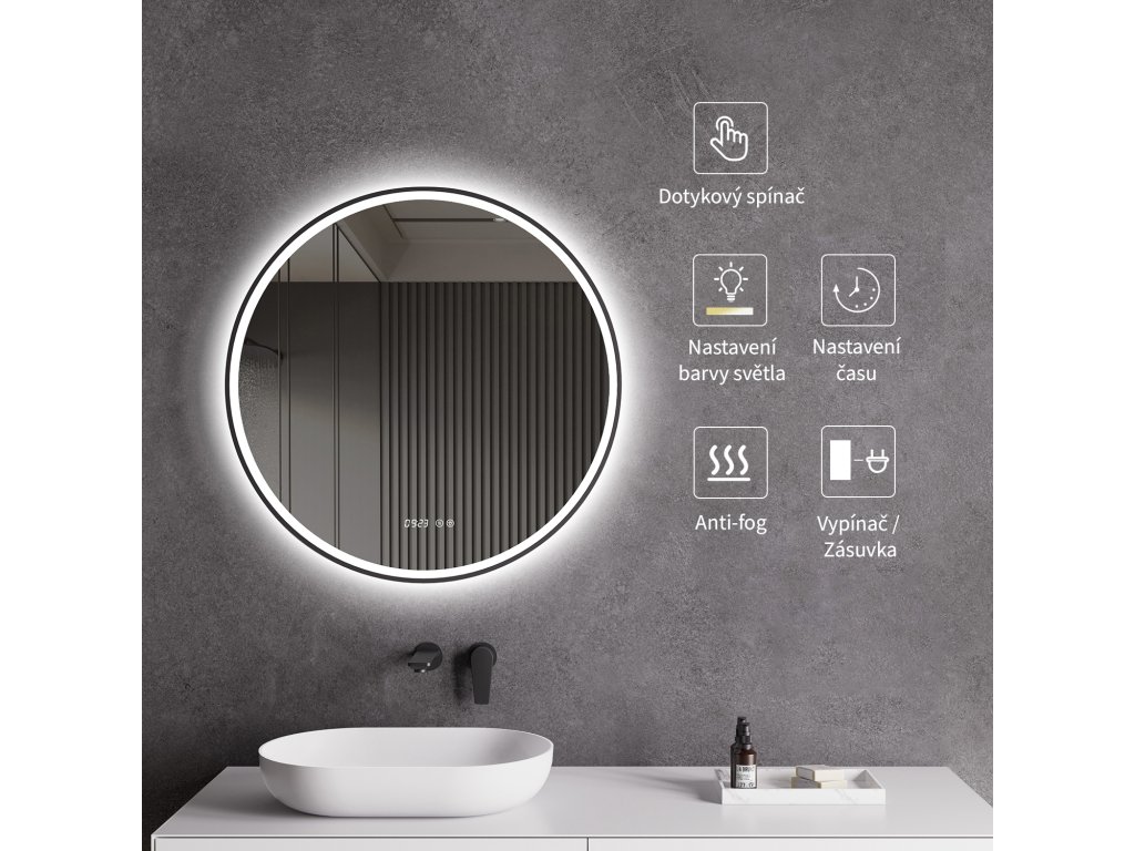 Cerano přináší do vaší koupelny zrcadlo, které spojuje moderní design s vysokou funkčností. Toto závěsné kruhové LED zrcadlo je vybaveno vybaveno elegantním černým rámem v matné úpravě, který dodává vaší koupelně sofistikovaný vzhled.