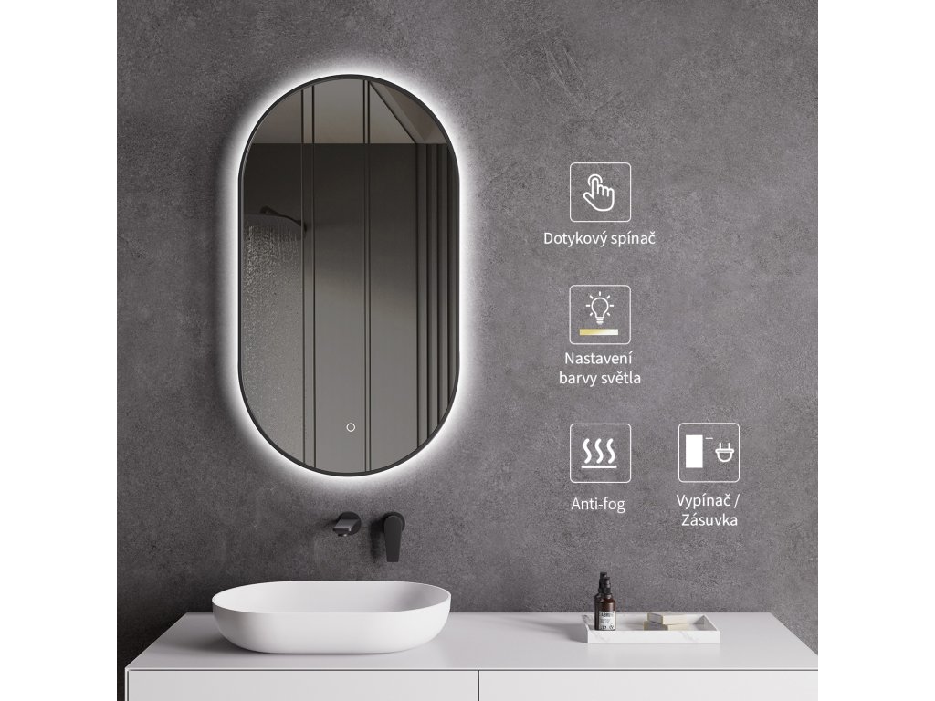 Zrcadlo je vybaveno LED osvětlením s nastavitelnou barvou světla – od 3000 K (teplá) do 6000 K (Neutrální). Přepínání barev jednoduše ovládáte dotykovým tlačítkem na ploše zrcadla. Poskytuje intenzivní a jasné světlo pro detailní péči i příjemné, jemné osvětlení pro relaxaci. Díky širokému rozsahu teploty barev tak snadno přizpůsobíte atmosféru aktuální potřebě.