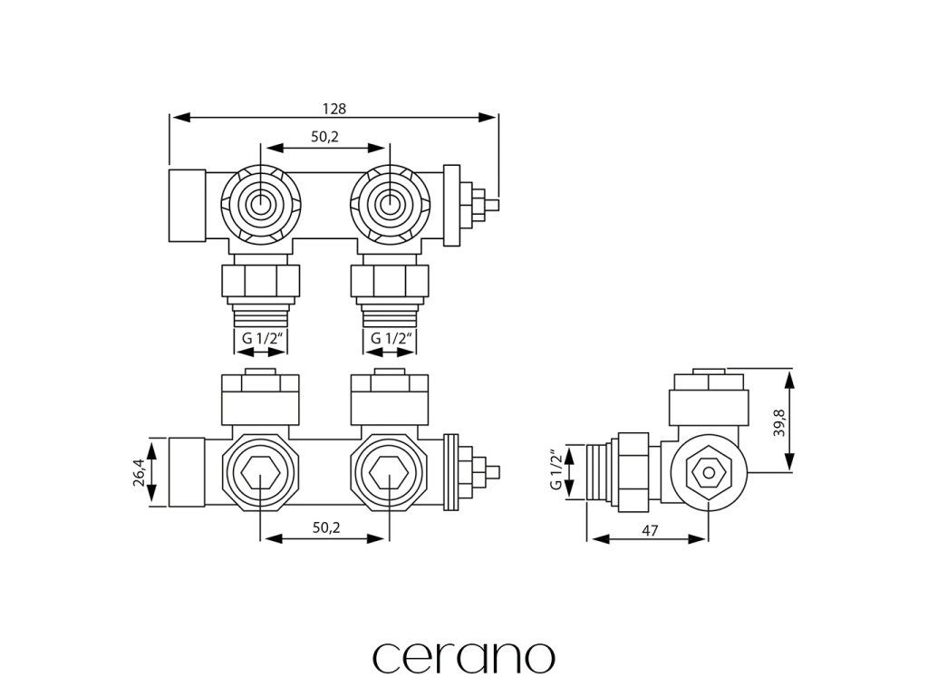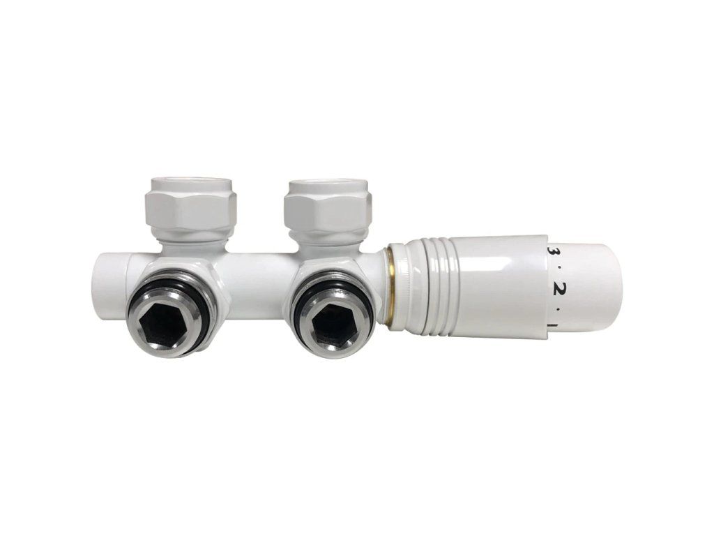 CERANO - Připojovací radiátorový ventil s termostatickou hlavicí - středové připojení 50mm - bílá lesklá