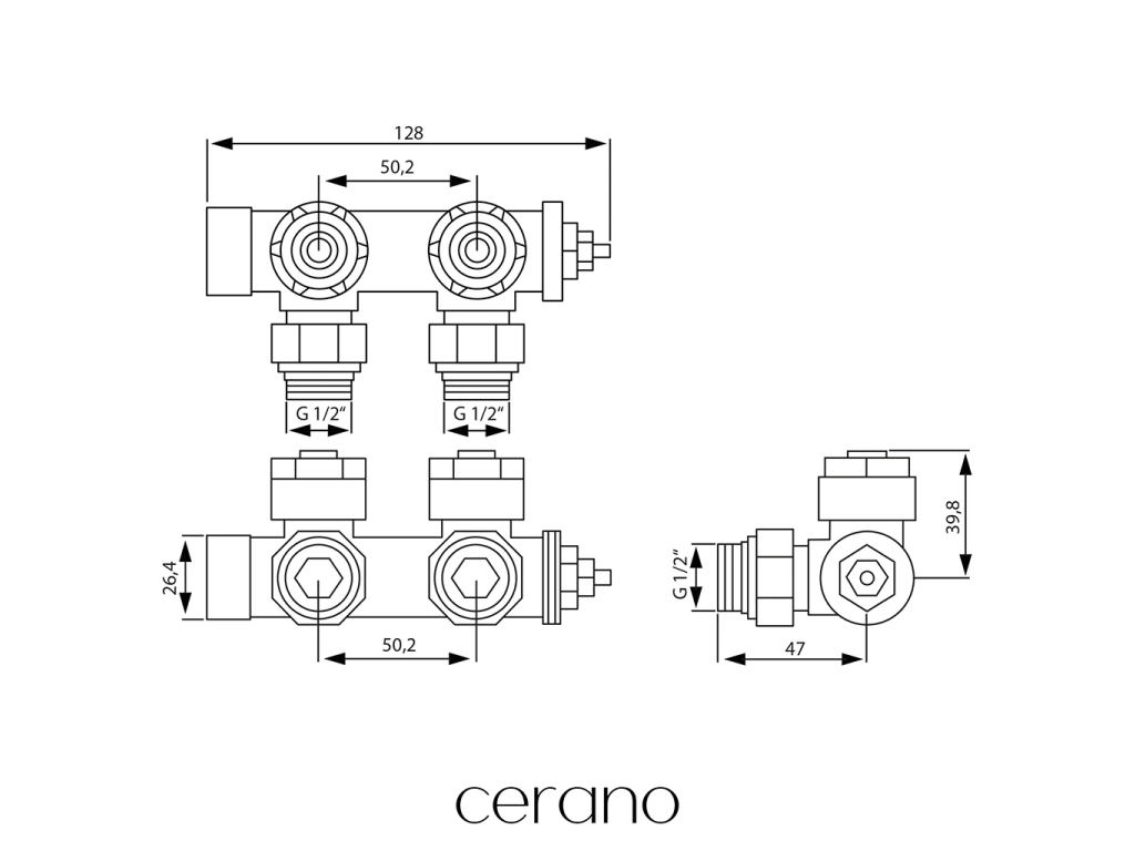 CERANO - Připojovací radiátorový ventil s termostatickou hlavicí - středové připojení 50mm - chrom