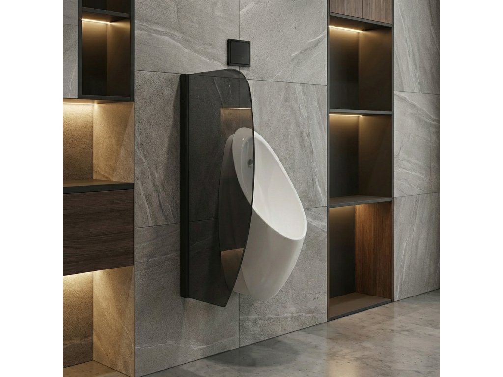 CERANO - Pisoárová dělící stěna Vetra - 6 mm - černá matná, mléčné sklo - 40x80 cm
