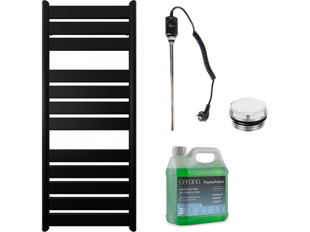 CERANO - Koupelnový elektrický radiátorový set Arturo - 600W - černá matná - 1200x500 mm