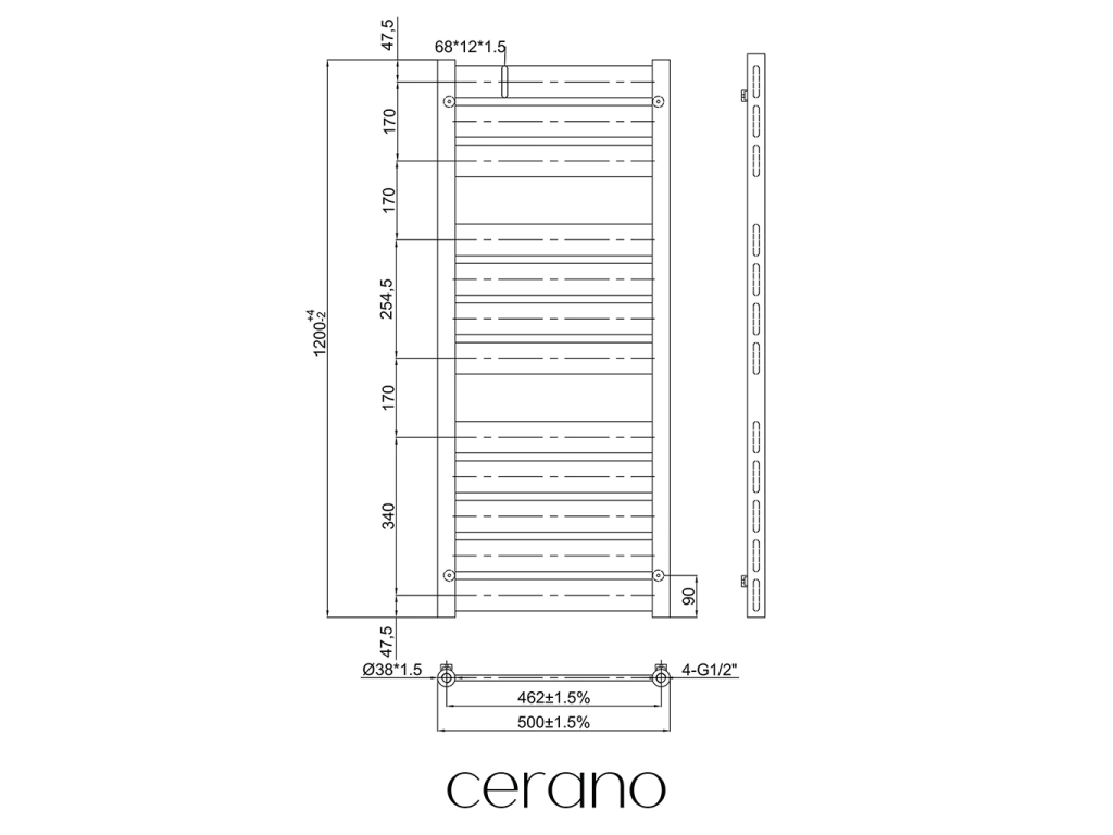 Standartní připojení radiátoru je 1/2" , což zajišťuje kompatibilitu s ventily a přípojnými sadami Cerano ,i od jiných výrobců. Ujistěte se, že všechny součásti odpovídají tomuto průměru, aby byl zajištěn bezpečný a efektivní provoz.