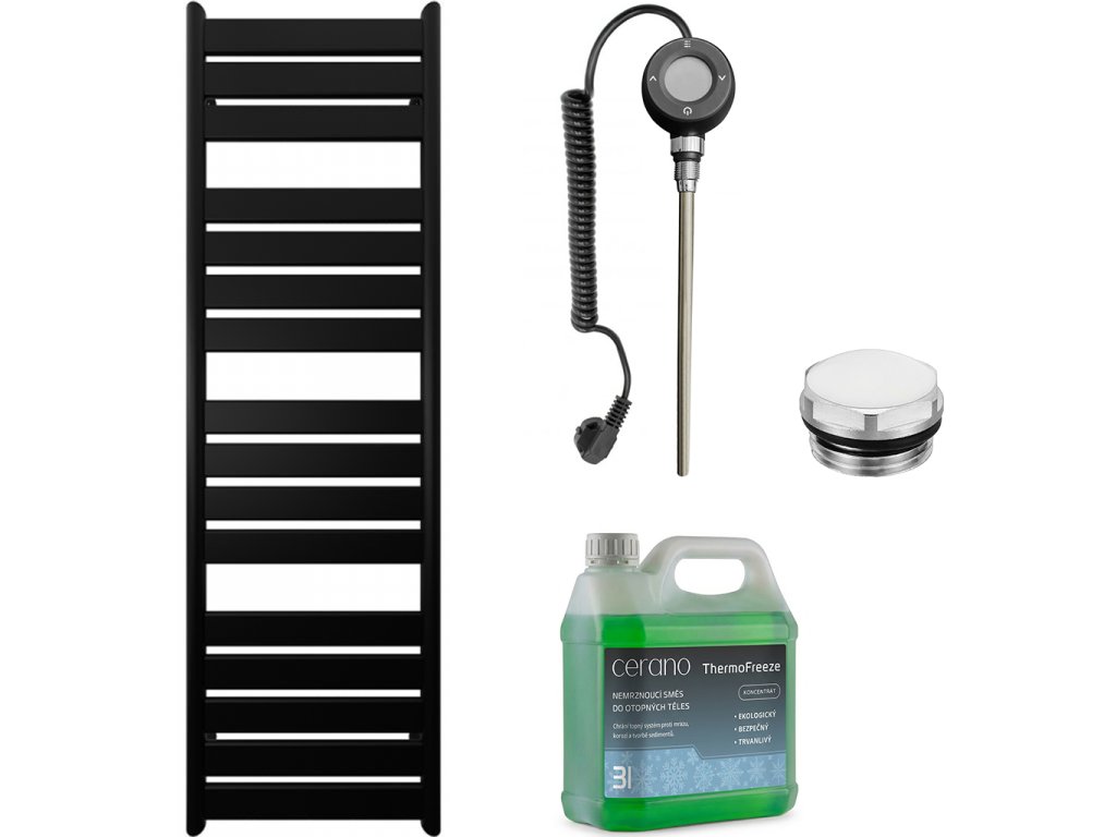 CERANO - Koupelnový elektrický radiátorový set Arturo - WIFI - 900W - černá matná - 1600x500 mm
