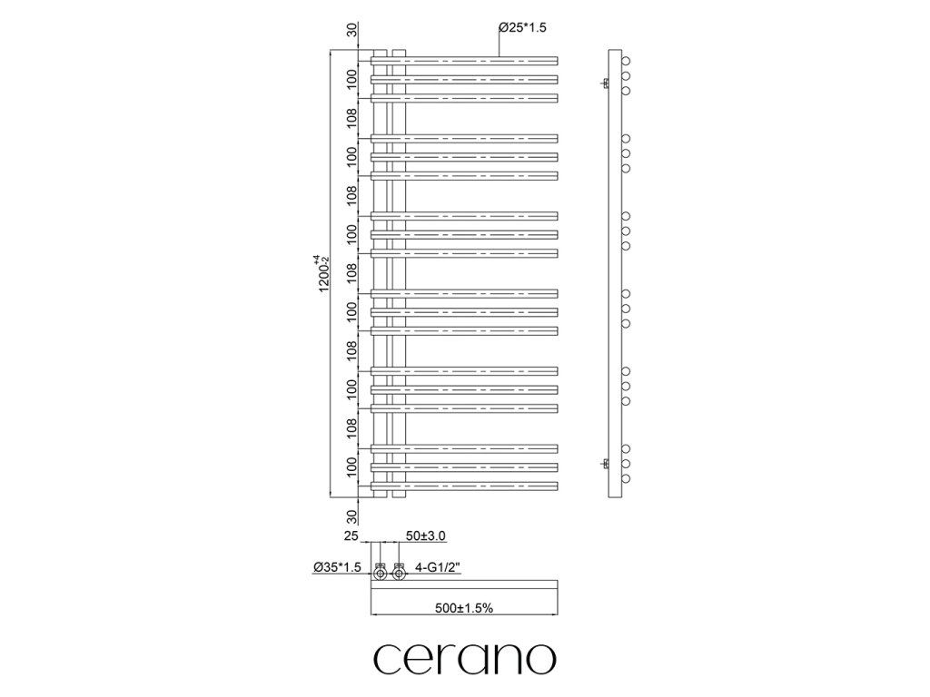 Standartní připojení radiátoru je 1/2" , což zajišťuje kompatibilitu s ventily a přípojnými sadami Cerano ,i od jiných výrobců. Ujistěte se, že všechny součásti odpovídají tomuto průměru, aby byl zajištěn bezpečný a efektivní provoz.