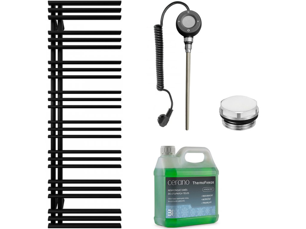 CERANO - Koupelnový elektrický radiátorový set Burke - L/P - WIFI - 600W - černá matná - 1600x500 mm