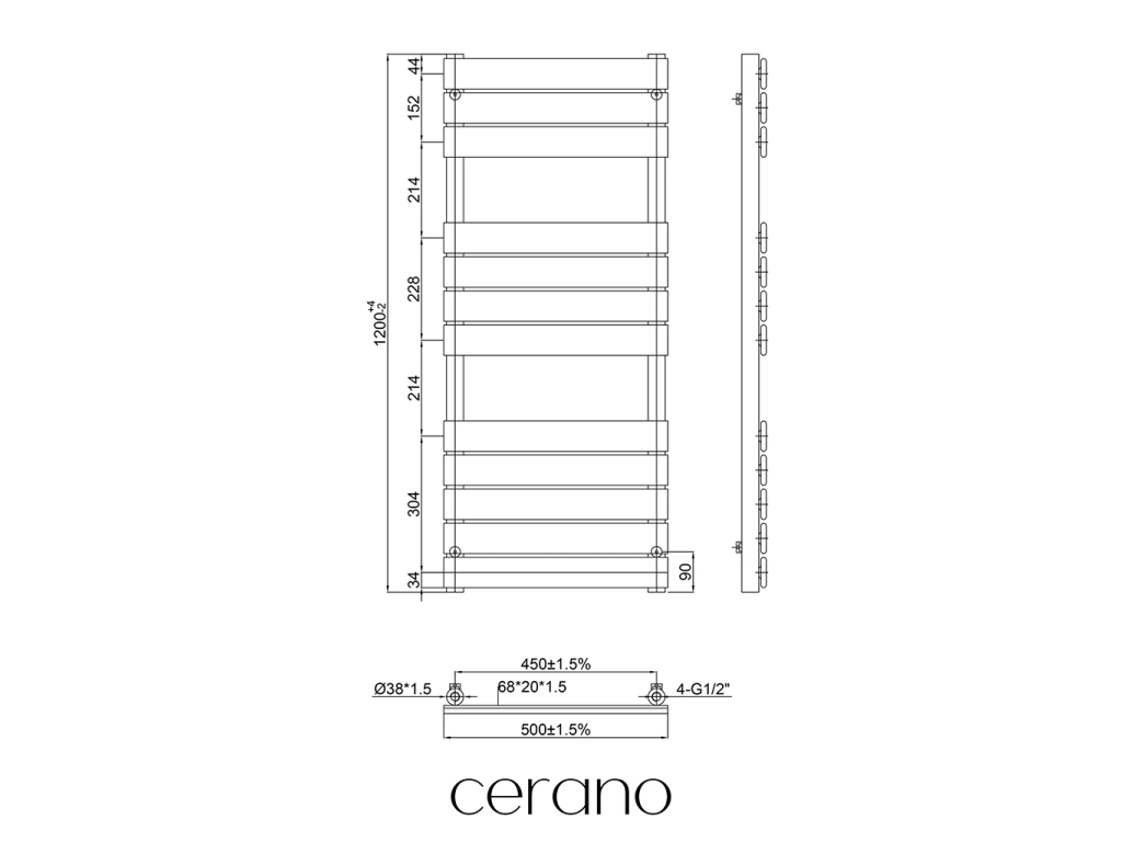 Standartní připojení radiátoru je 1/2" , což zajišťuje kompatibilitu s ventily a přípojnými sadami Cerano ,i od jiných výrobců. Ujistěte se, že všechny součásti odpovídají tomuto průměru, aby byl zajištěn bezpečný a efektivní provoz.