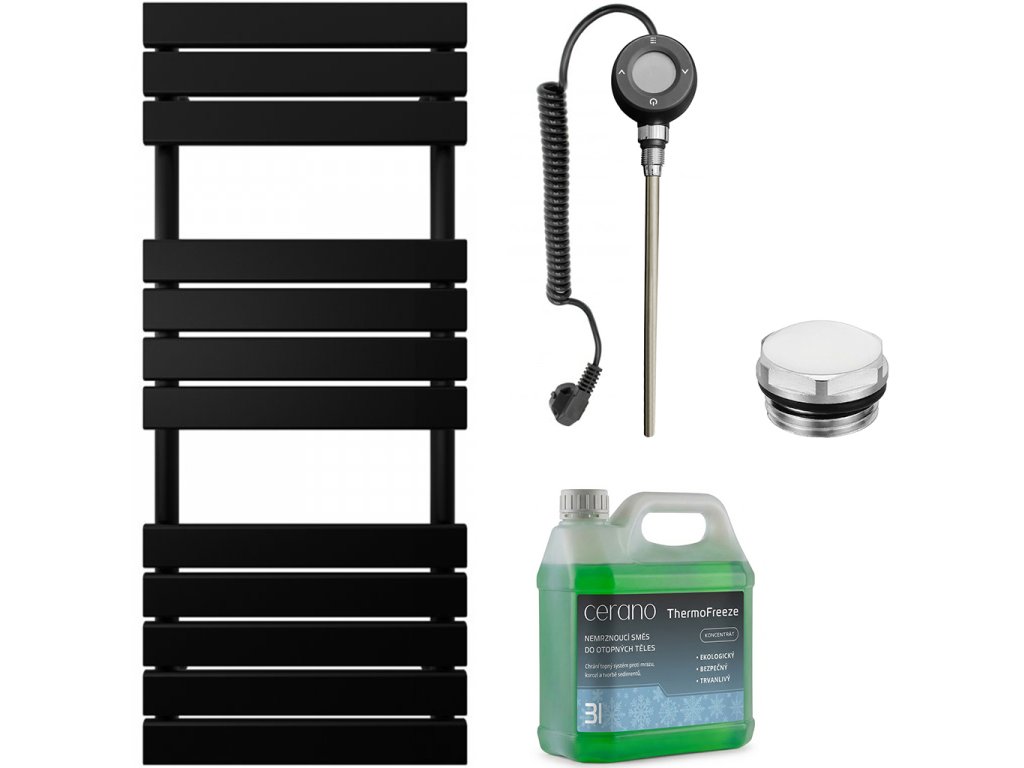 CERANO - Koupelnový elektrický radiátorový set Claude - WIFI - 600W - černá matná - 1200x500 mm