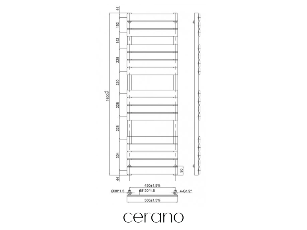 Standartní připojení radiátoru je 1/2" , což zajišťuje kompatibilitu s ventily a přípojnými sadami Cerano ,i od jiných výrobců. Ujistěte se, že všechny součásti odpovídají tomuto průměru, aby byl zajištěn bezpečný a efektivní provoz.