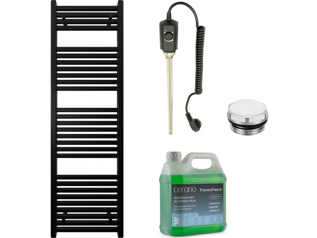 CERANO - Koupelnový elektrický radiátorový set Donovan - 300W - černá matná - 1600x500 mm