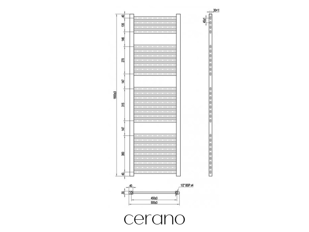 Standartní připojení radiátoru je 1/2" , což zajišťuje kompatibilitu s ventily a přípojnými sadami Cerano ,i od jiných výrobců. Ujistěte se, že všechny součásti odpovídají tomuto průměru, aby byl zajištěn bezpečný a efektivní provoz.