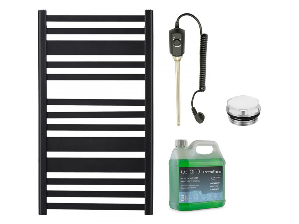CERANO - Koupelnový elektrický radiátorový set Enrico - 300W - černá matná - 660x550 mm
