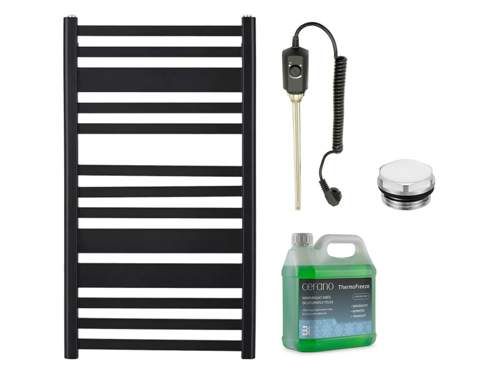 CERANO - Koupelnový elektrický radiátorový set Enrico - 300W - černá matná - 970x550 mm