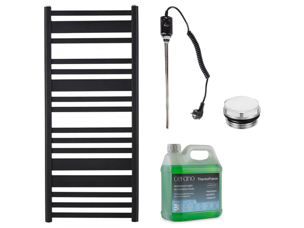 CERANO - Koupelnový elektrický radiátorový set Enrico - 600W - černá matná - 1210x550 mm
