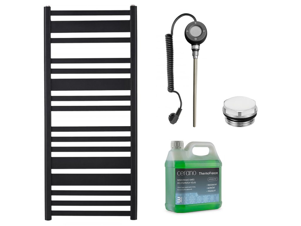 CERANO - Koupelnový elektrický radiátorový set Enrico - WIFI - 600W - černá matná - 1210x550 mm