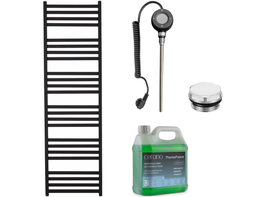 CERANO - Koupelnový elektrický radiátorový set Fulgiduson - WIFI - 600W - černá matná - 1800x530 mm