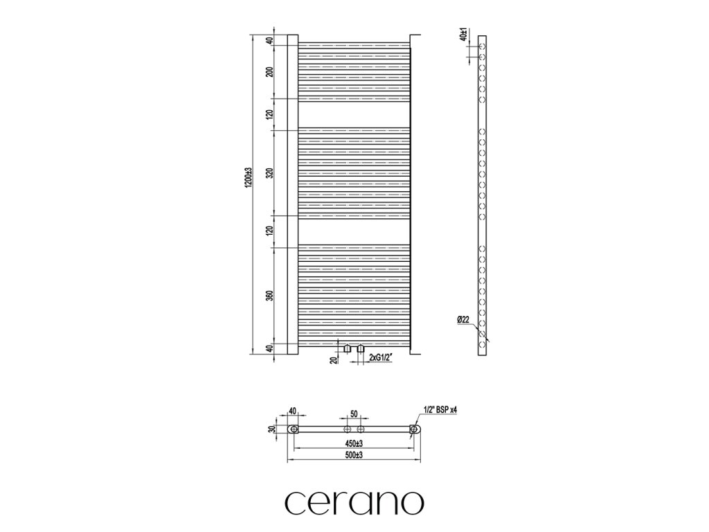 Standartní připojení radiátoru je 1/2" , což zajišťuje kompatibilitu s ventily a přípojnými sadami Cerano ,i od jiných výrobců. Ujistěte se, že všechny součásti odpovídají tomuto průměru, aby byl zajištěn bezpečný a efektivní provoz.