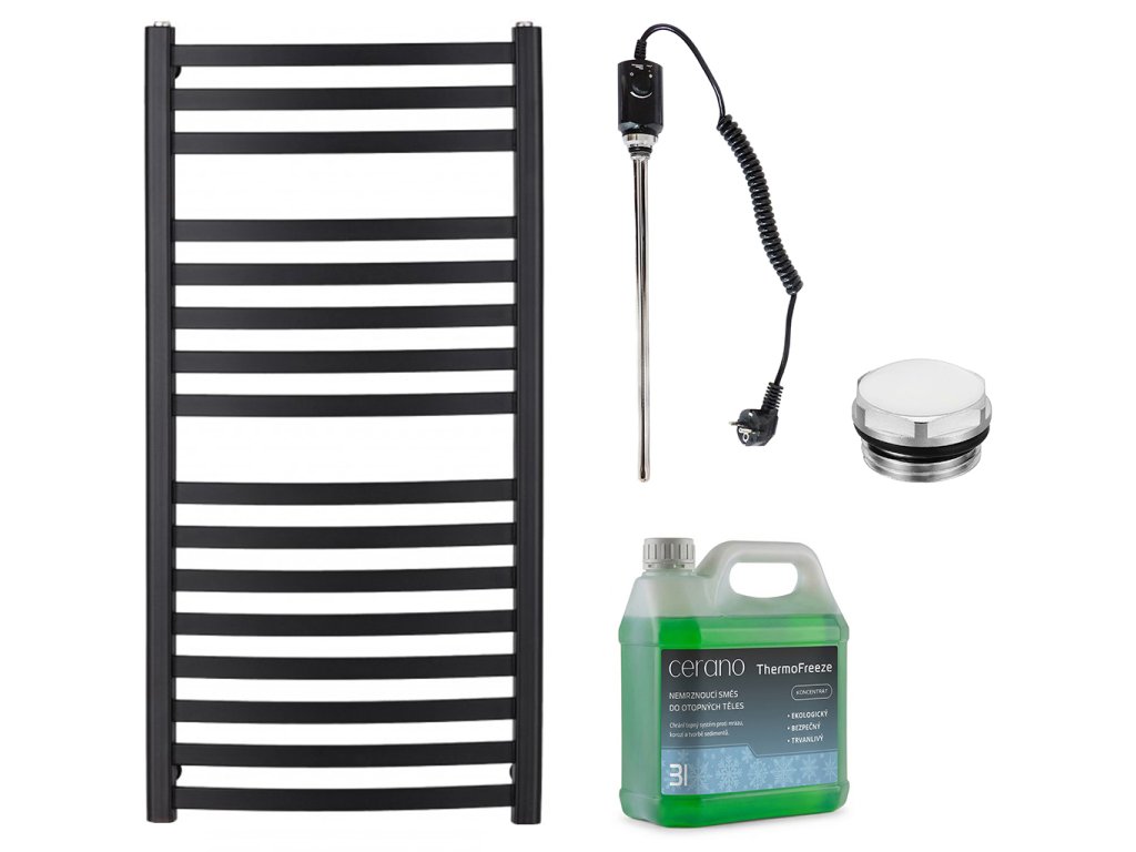 CERANO - Koupelnový elektrický radiátorový set Paolo - 600W - černá matná - 1090x550 mm