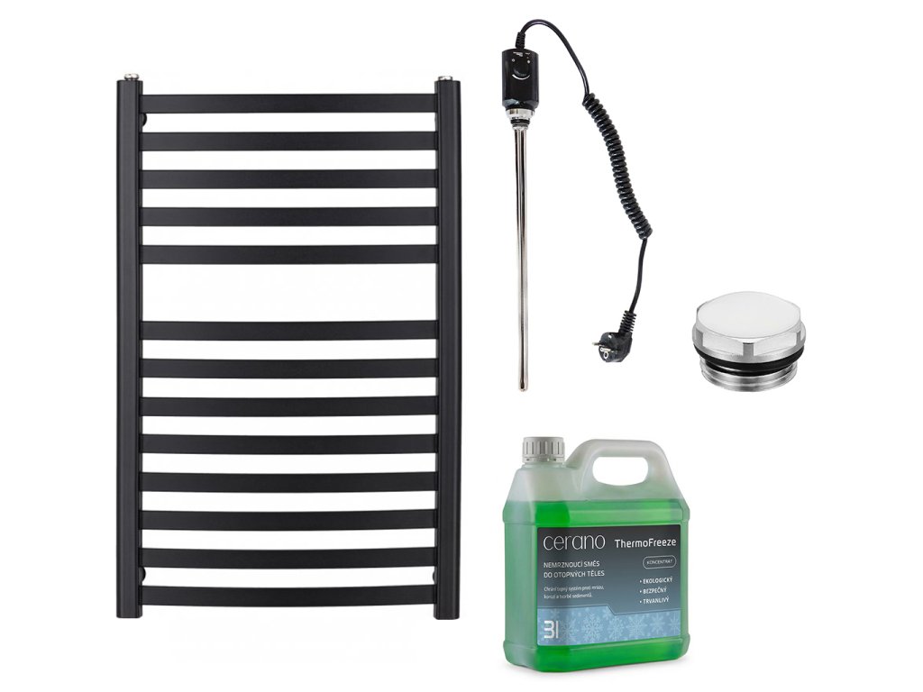 CERANO - Koupelnový elektrický radiátorový set Paolo - 600W - černá matná - 850x550 mm