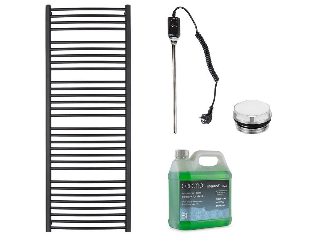 CERANO - Koupelnový elektrický radiátorový set Stefano - 600W - černá matná - 1460x650 mm
