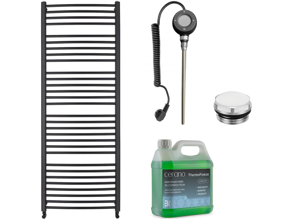 CERANO - Koupelnový elektrický radiátorový set Stefano - WIFI - 600W - černá matná - 1460x650 mm