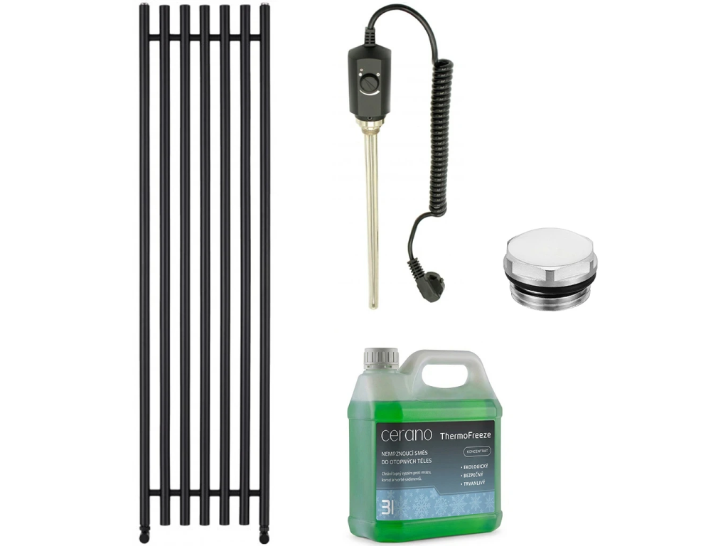 CERANO - Koupelnový elektrický radiátorový set Valerio - 900W - černá matná - 1560x390 mm
